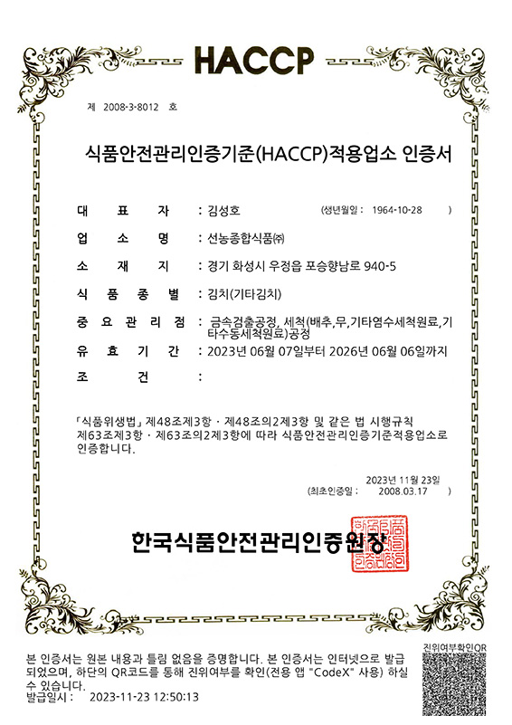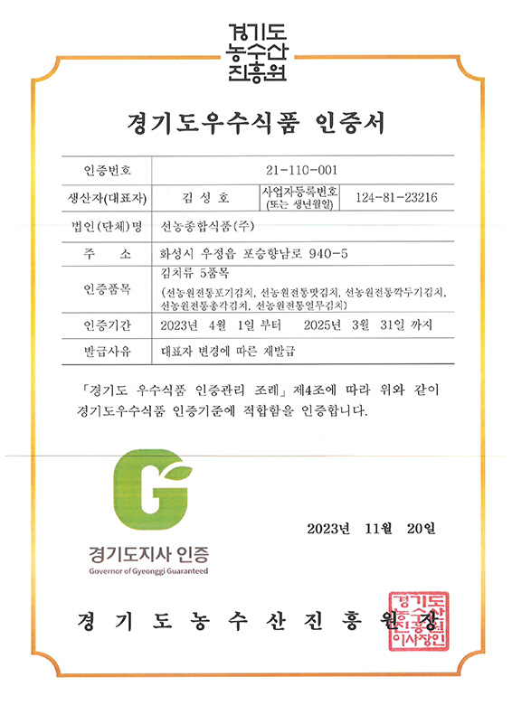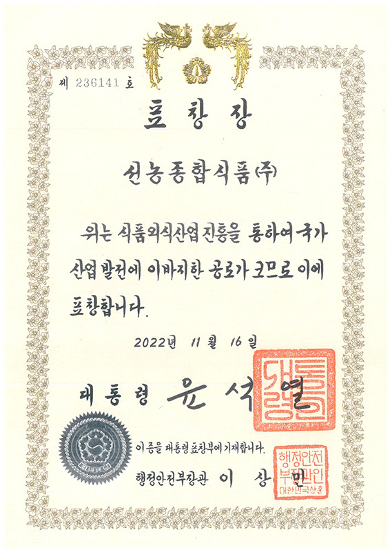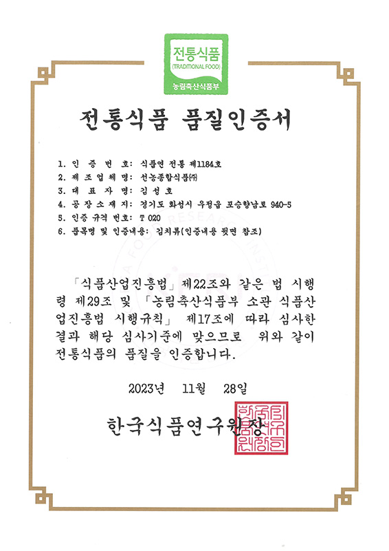 2022 제11회 대한민국 김치품평회 최우수상 농림축산식품부장관